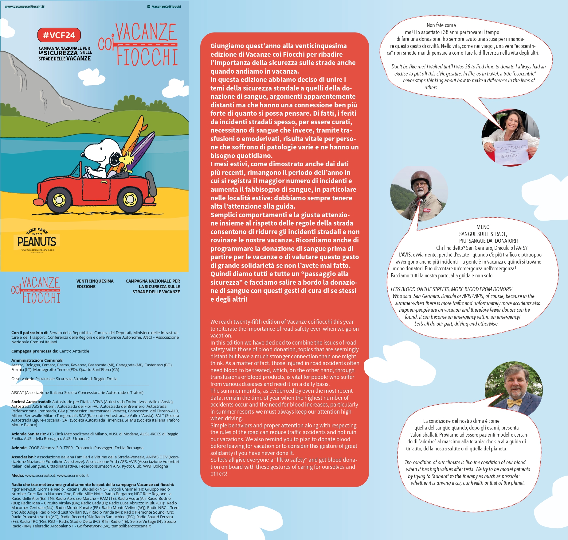 Questa edizione assume un valore ancora più significativo intrecciando due tematiche cruciali: la sicurezza stradale e la donazione di sangue. Infatti, l'aumento degli incidenti estivi comporta un conseguente incremento del fabbisogno di sangue per le cure dei feriti. In questo senso, guidare con prudenza e donare il sangue rappresentano due azioni concrete che, pur differenti, risultano profondamente legate: in entrambi i casi, si tratta di atti di responsabilità e attenzione che mettono al primo posto la propria salute e quella degli altri.
